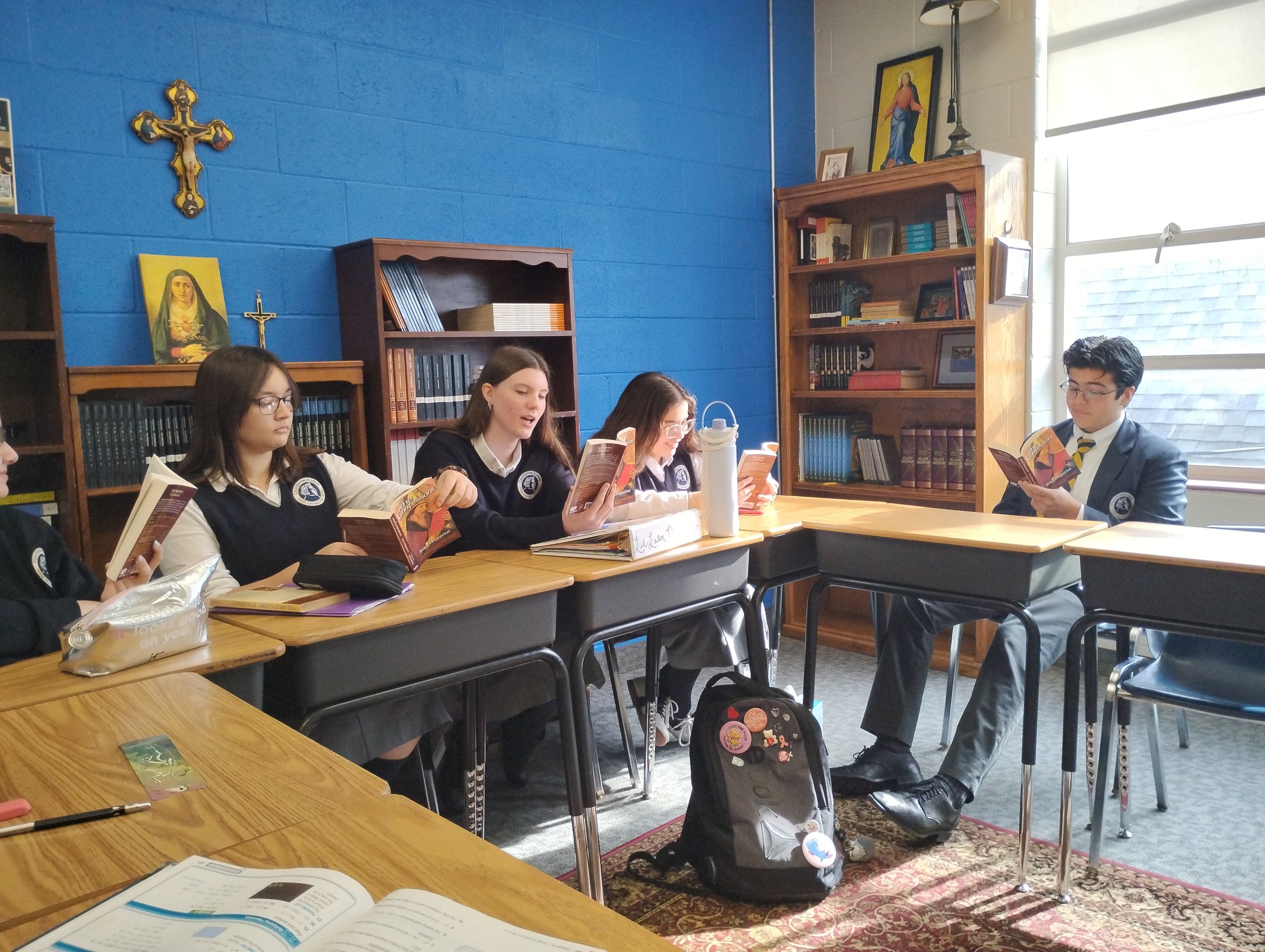 Theology, “the study of God,” is the context by which all other texts are studied. The principal theological texts studied are the Bible and the Catechism of the Catholic Church. We also read selections from the Church Fathers, Documents of the Church Councils, and Papal Encyclicals.